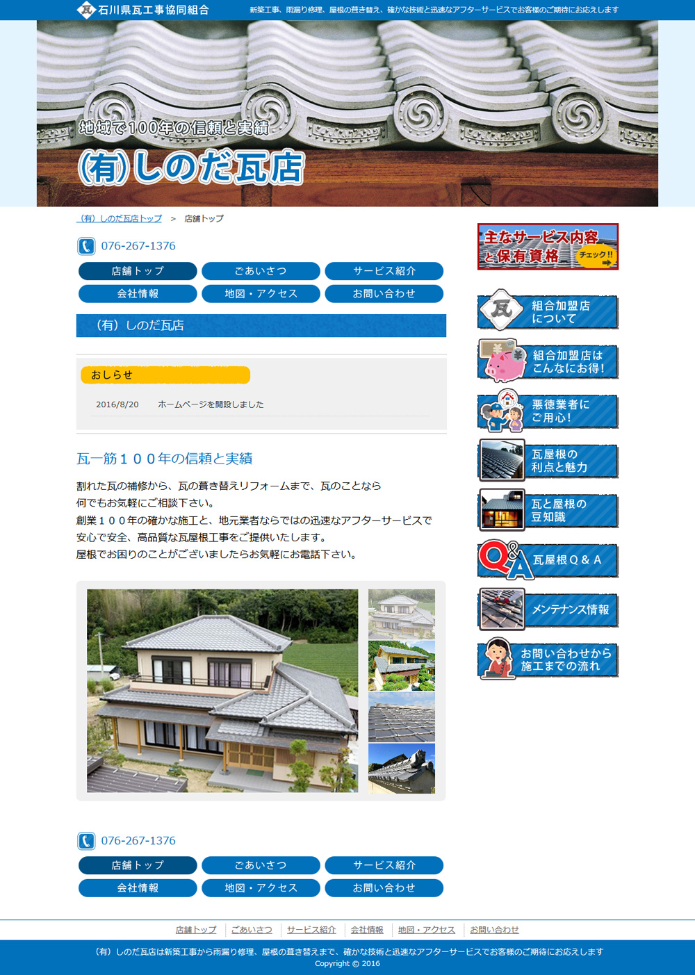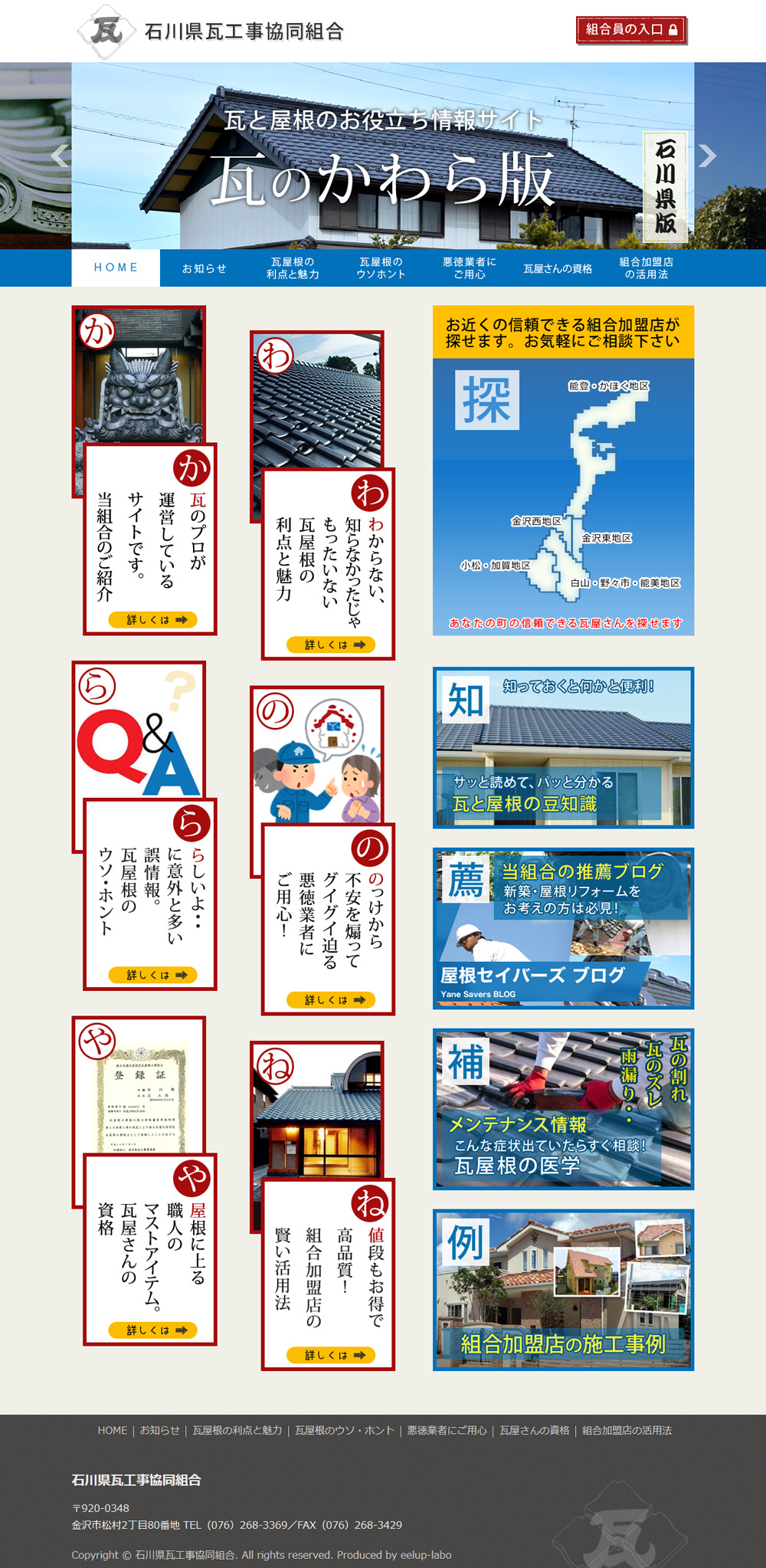 石川県瓦工事協同組合の協力を得て商品化した、瓦工事組合のための汎用ホームページシステムです。